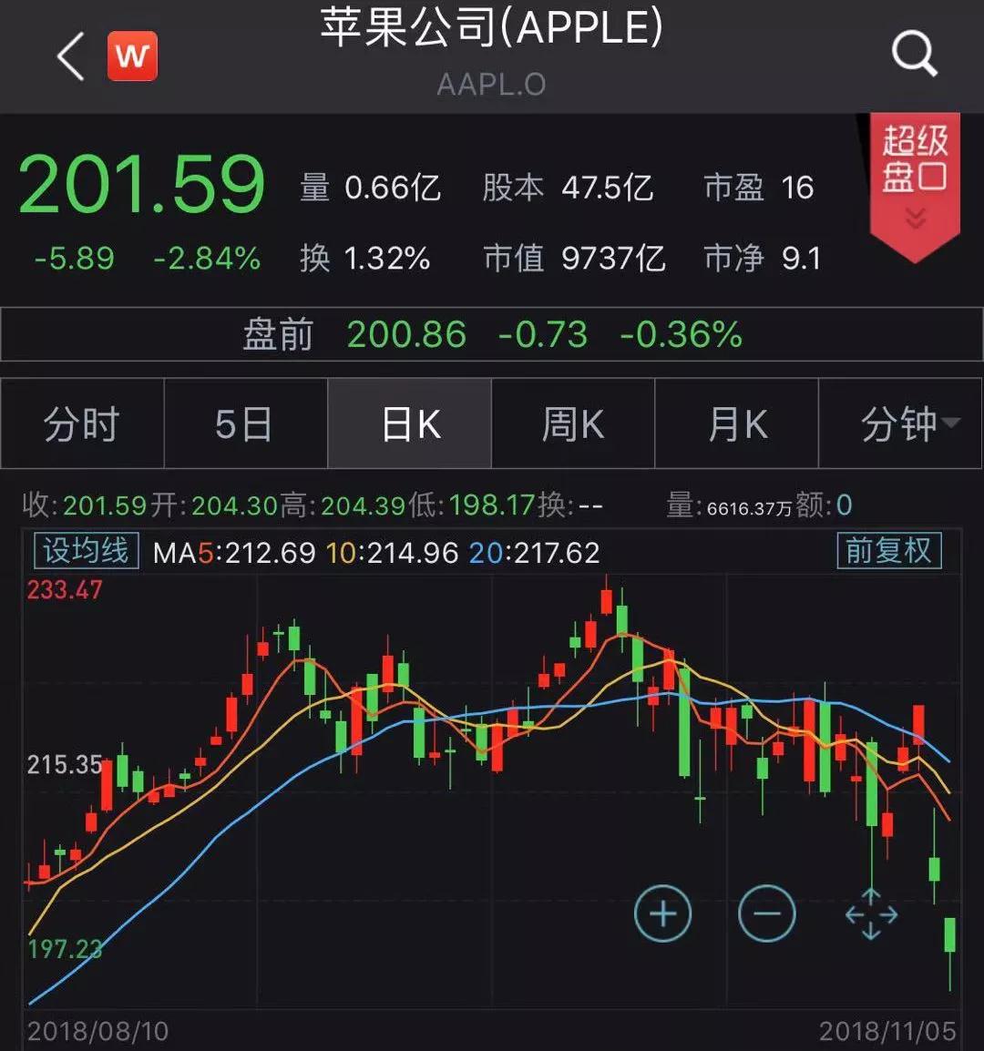 11月5日,苹果股价收跌2.84%,盘中一度跌破200美元大关。而事实上,自上周公布最新一季财报后,其股价已累计下跌近10%,市值也从万亿美元的神坛上跌落。