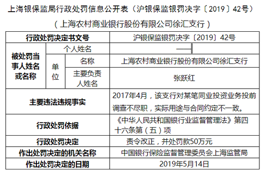 上海农商行妙境支行原行长涉嫌严重违法接受监察调查