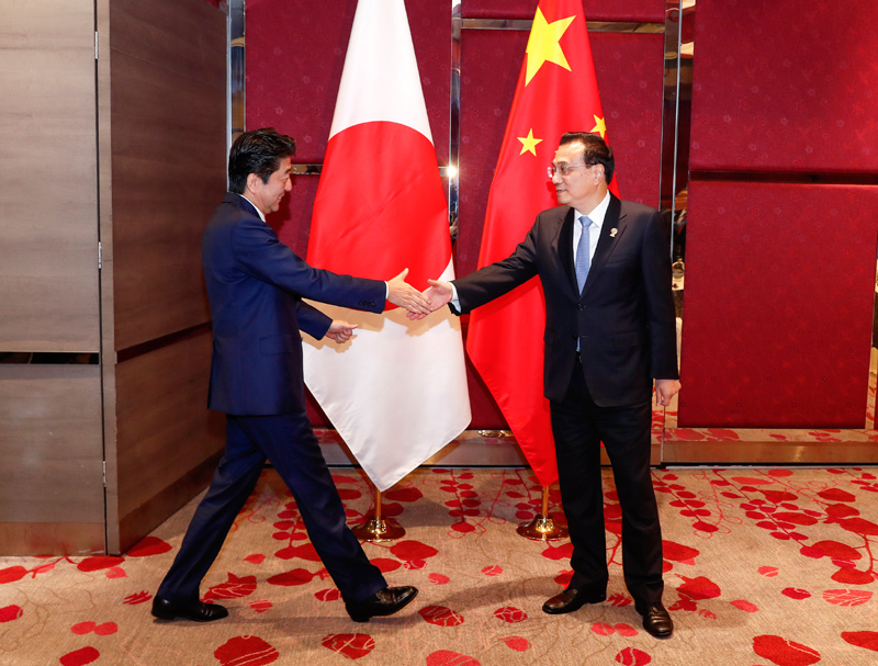 李克强会见出席中日韩外长会的韩国外长和日本外相