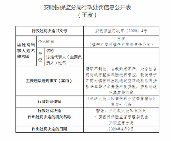 伊犁国民村镇银行5宗违法被罚