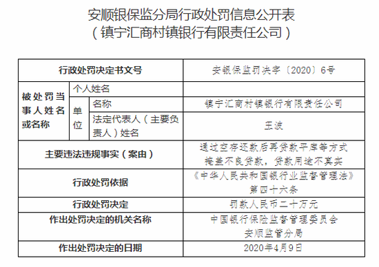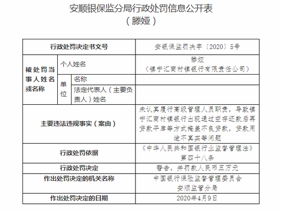 长宁中成村镇银行2项违规被罚