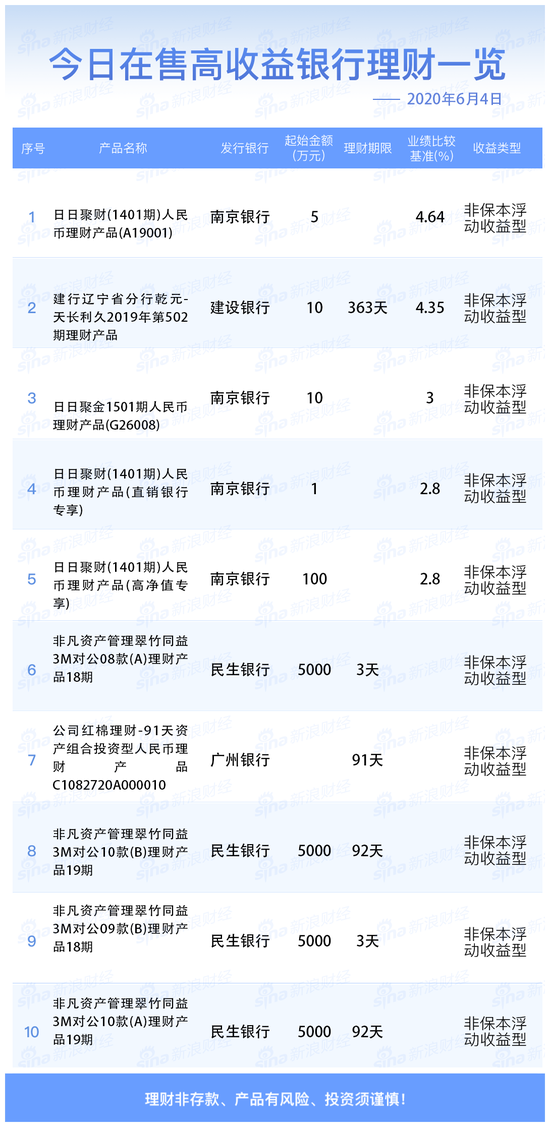银行30日在售高收益理财产品一览