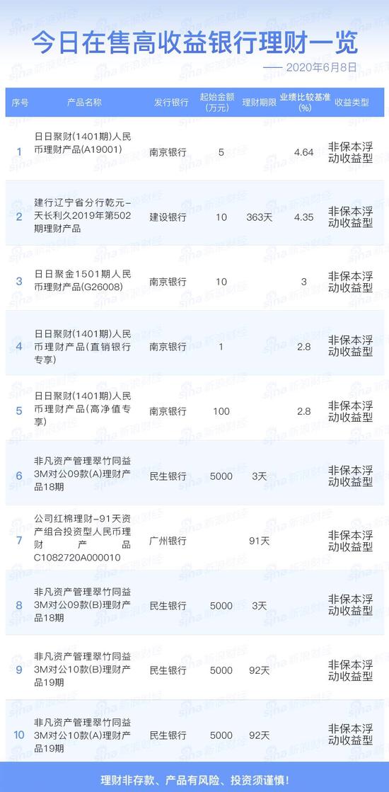 银行6月8日在售高收益理财产品