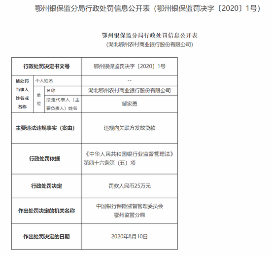 湖北洪湖农商行违法遭罚