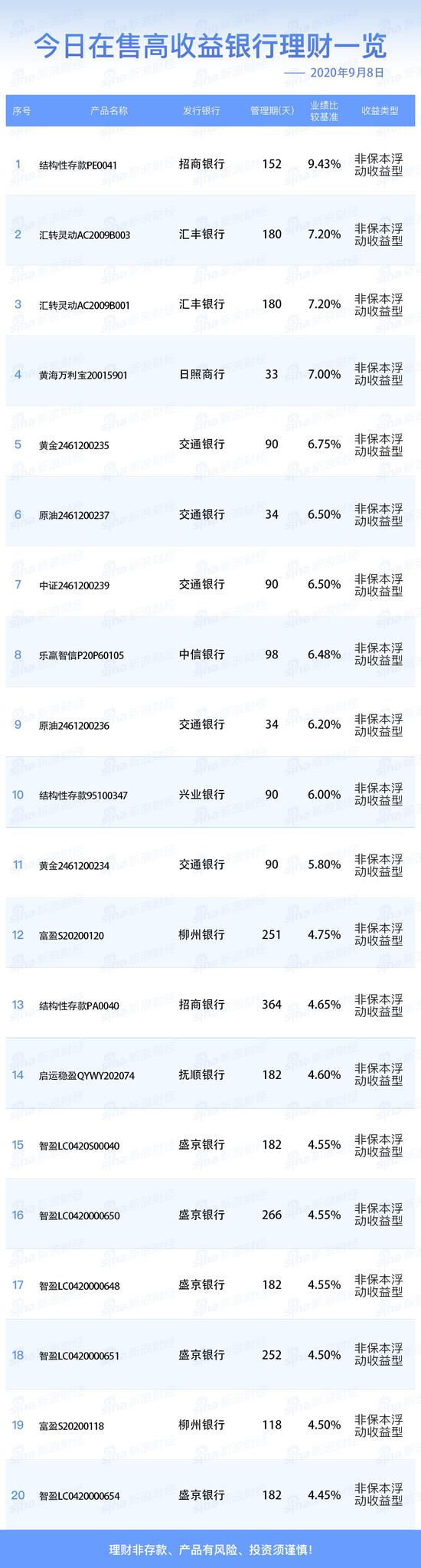 银行16日在售高收益理财产品一览 2019年10月16日11时06分