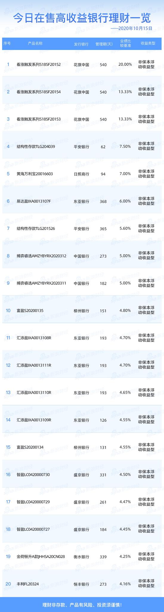 银行15日在售高收益理财产品一览 2019年11月15日09时43分