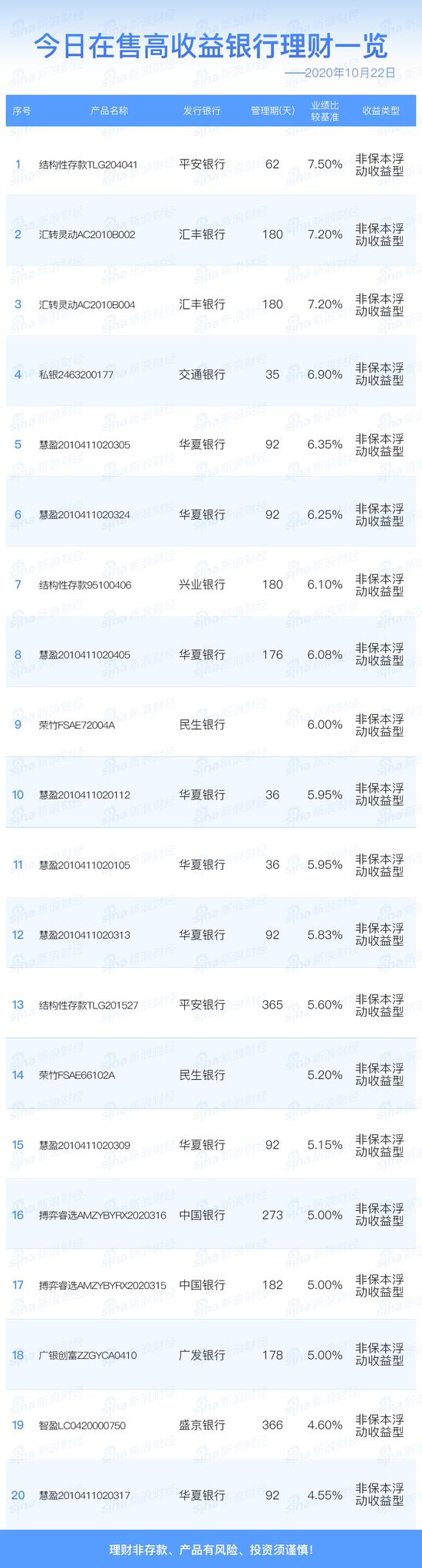 银行22日在售高收益理财产品一览 2019年11月22日10时09分