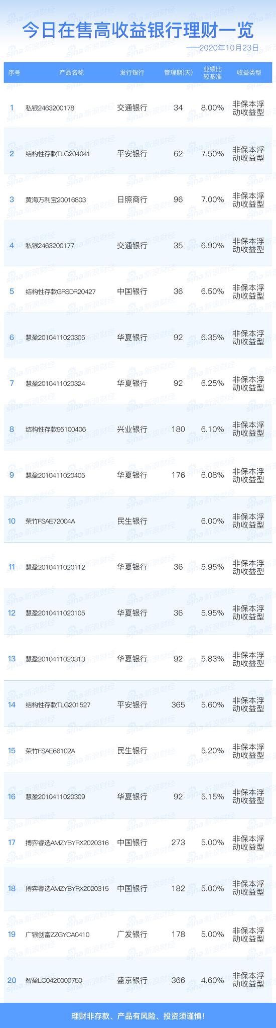 银行23日在售高收益理财产品一览 2022年03月23日10时17分