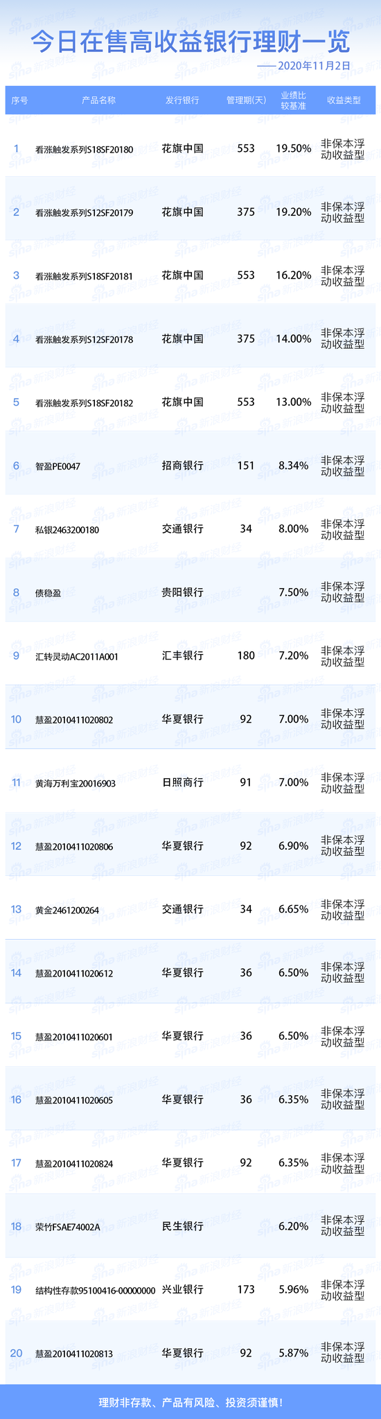 银行30日在售高收益理财产品一览 2019年10月30日09时04分