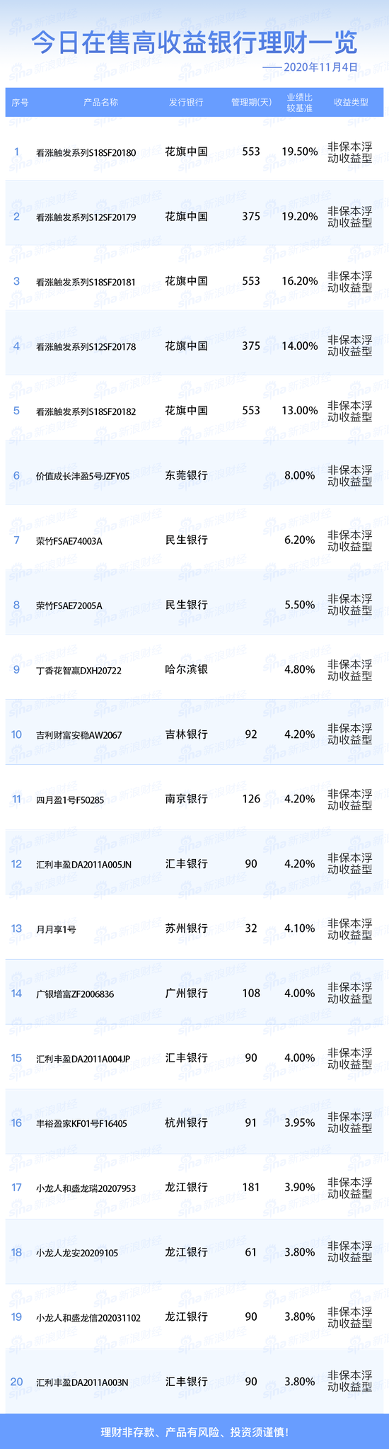银行12日在售高收益理财产品一览 2019年11月12日15时48分