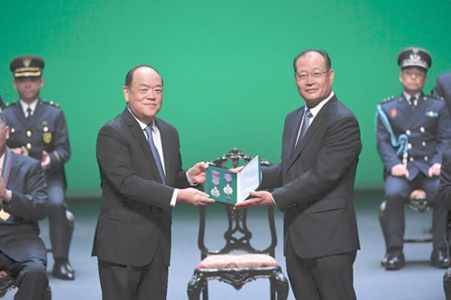 澳门特区贺一诚行政长官向澳门分行李光行长颁授银莲花勋章