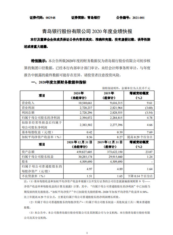 农行:2020年净利润2164.00亿元