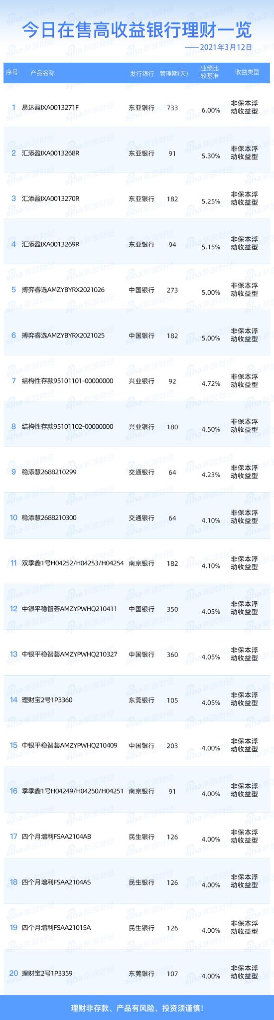 银行12日在售高收益理财产品一览 2019年11月12日15时48分