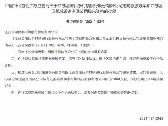 江苏邗江民泰村镇银行违法遭罚