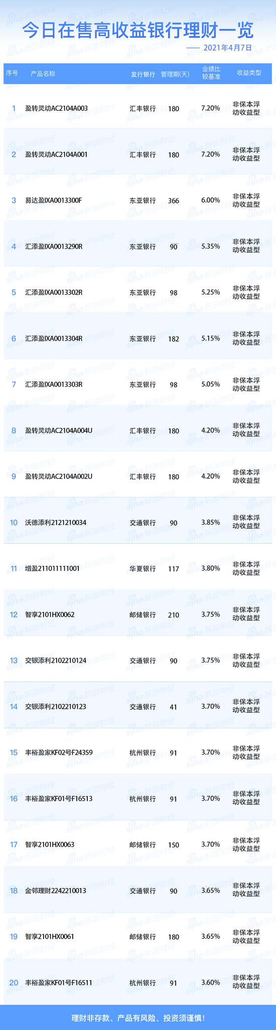 银行16日在售高收益理财产品一览 2019年10月16日11时06分