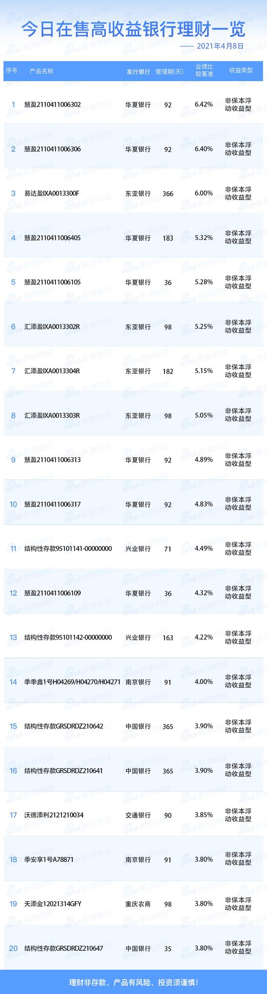 银行16日在售高收益理财产品一览 2019年10月16日11时06分