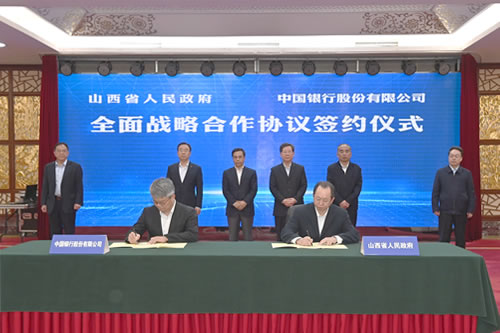 •         中国金融网讯     4月8日,中国银行与山西省人民政府在太原签署《关于金融支持山西省“十四五”经济社会发展全面战略合作协议》。山西省委书记楼阳生、省长林武、副省长王一新,中国银行董事长刘连舸、党委副书记刘金、副行长林景臻出席签约仪式。