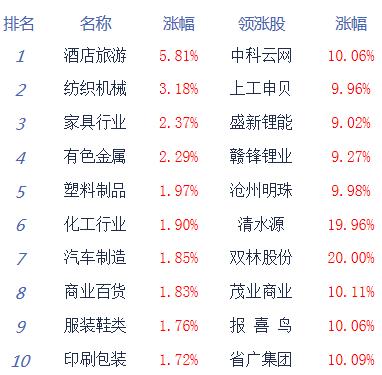 消息面上,板块普遍飘红,旅游、医美、化工、零售、钢铁、新能源汽车等板块居涨幅榜前列,农业、电力、银行等少数板块表现较弱。