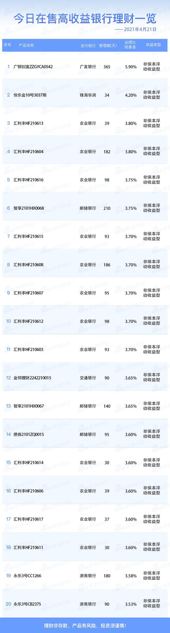 银行21日在售高收益理财产品一览 2019年11月21日10时53分
