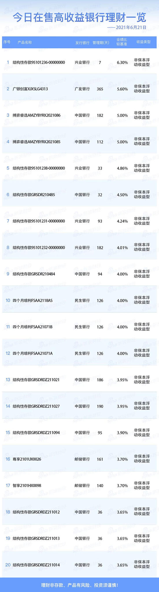 银行21日在售高收益理财产品一览 2019年11月21日10时53分