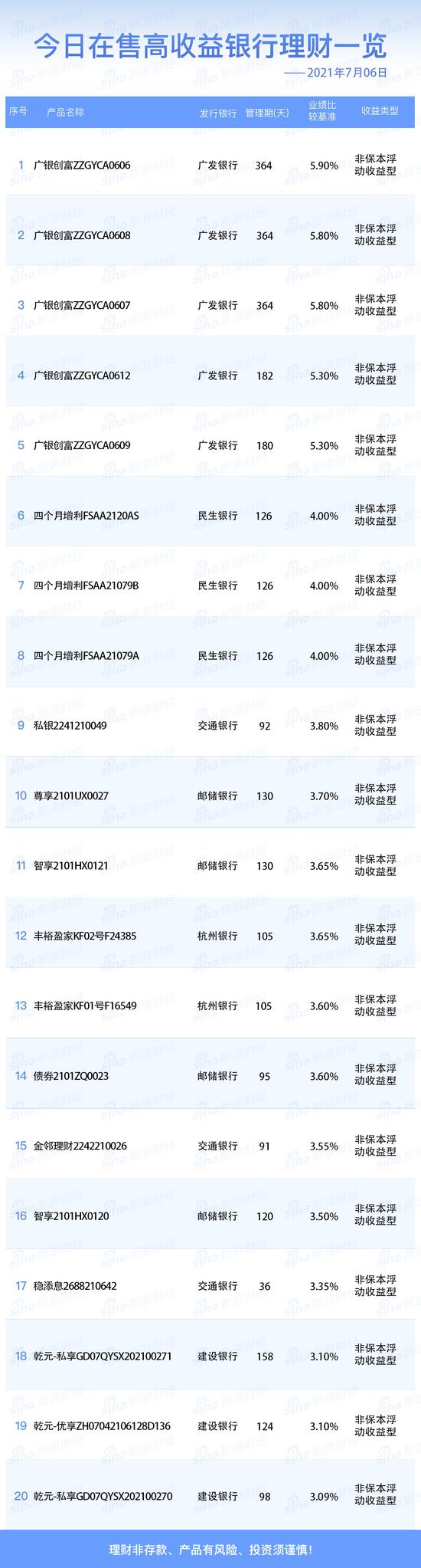 银行16日在售高收益理财产品一览 2019年10月16日11时06分