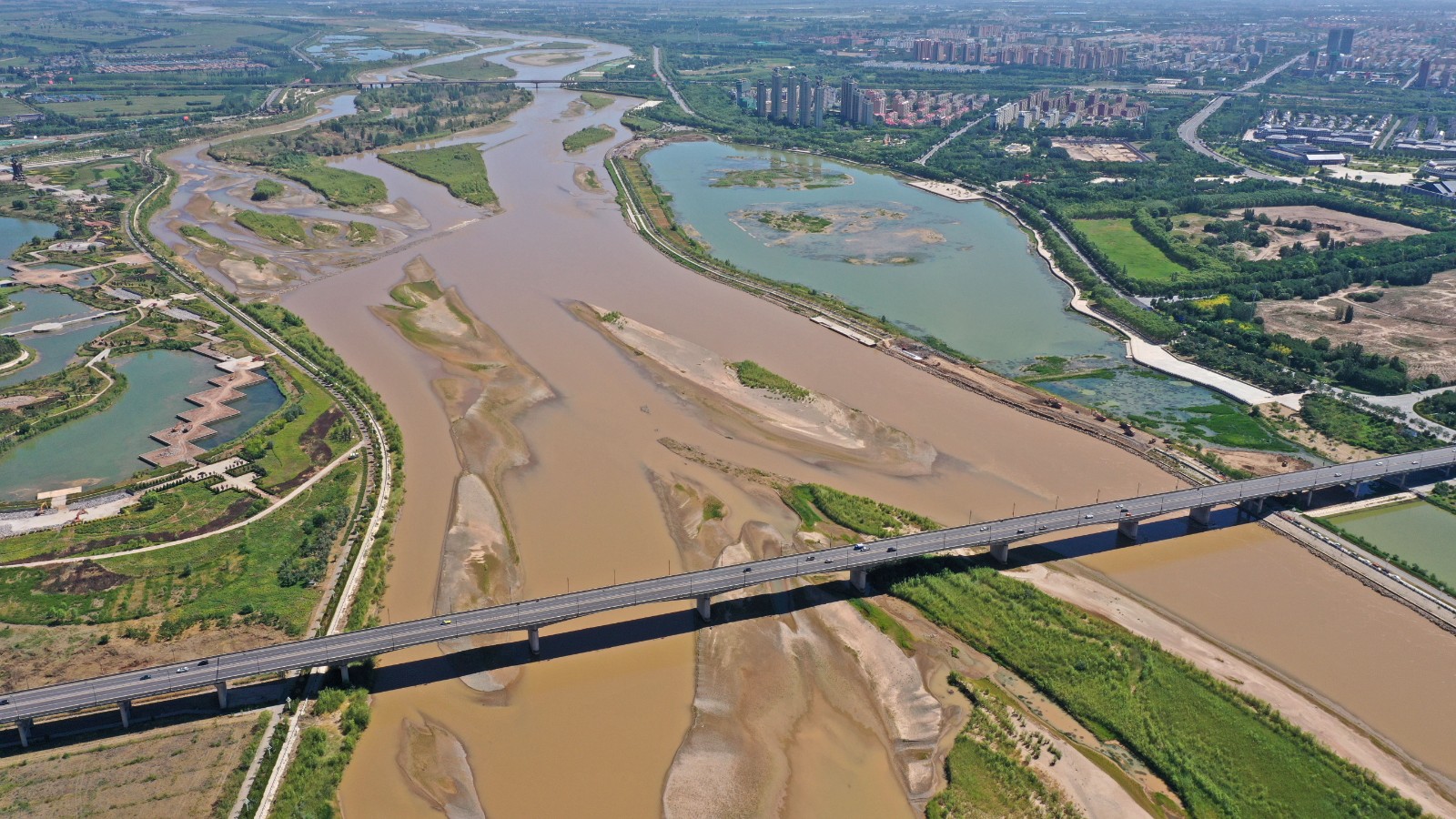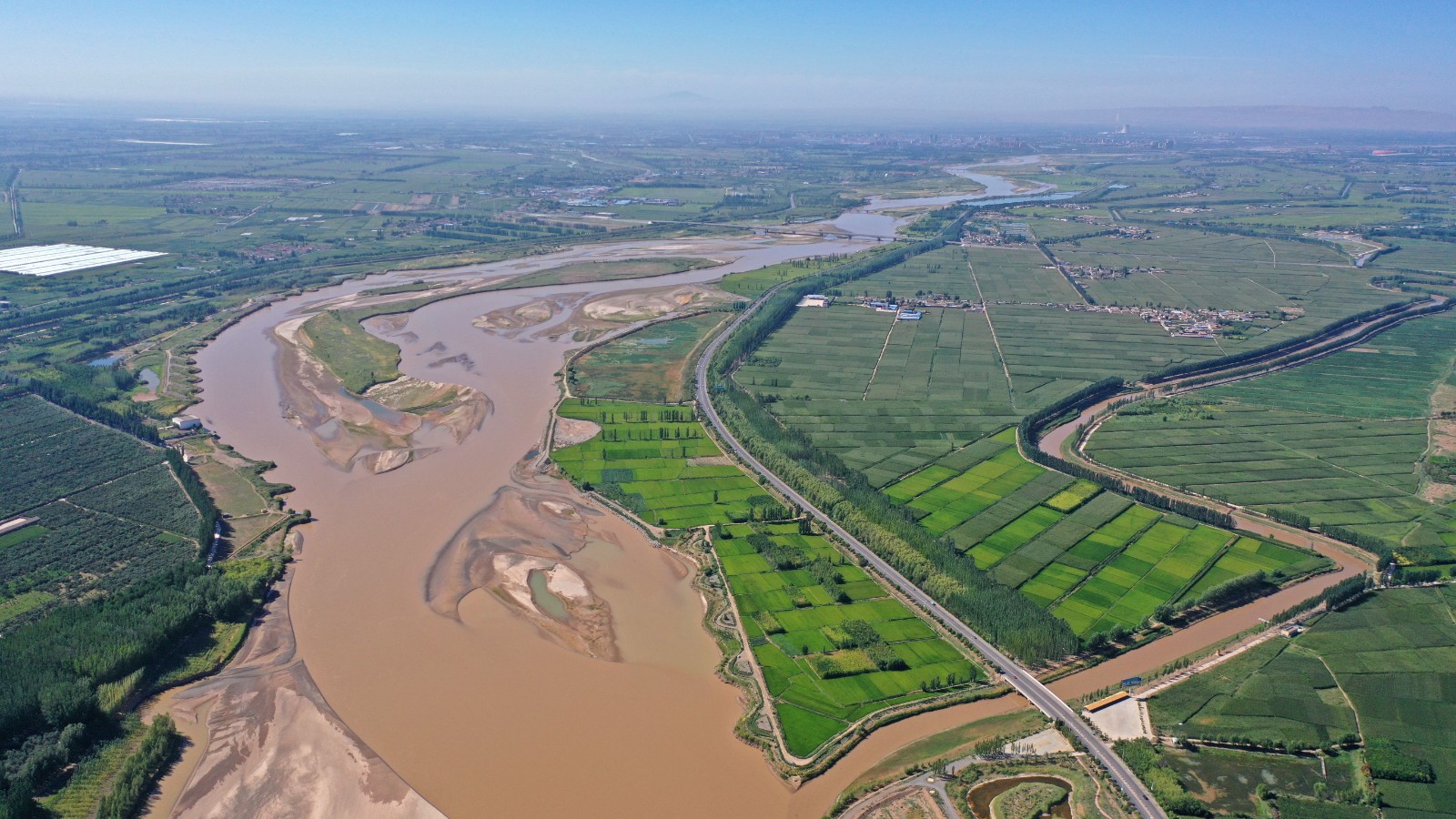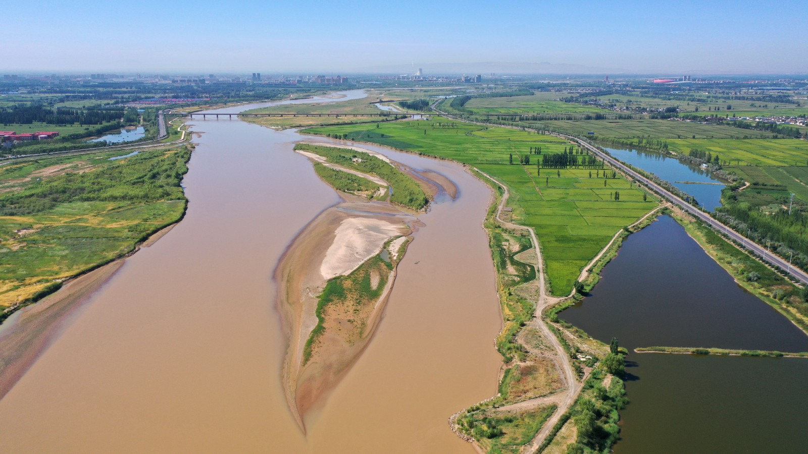 青铜峡市叶盛段的黄河(8月5日摄,无人机照片)。