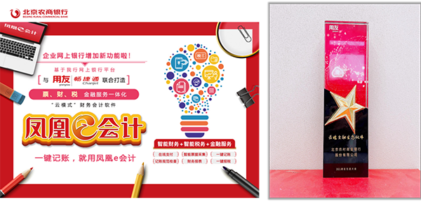 “凤凰e会计”是北京农商银行立足普惠金融,服务实体经济,携手用友公司为中小微企业客户打造的一款普惠型产品,能够为企业提供在线支付、在线记账、发票管理等服务,通过融合银行支付结算和会计记账软件财税管理功能,创新实现了银行流水从企业网银到记账软件的自动导入,可一键生成记账凭证,一键完成纳税申报,切实解决了记账软件贵、会计记账难等问题,为中小微企业客户提供安全、快捷的财务管理服务。