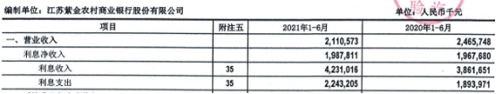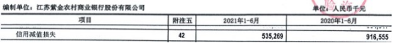 2021年1-6月,紫金银行信用减值损失为5.35亿元,上年同期为9.17亿元,同比减少41.60%。