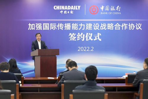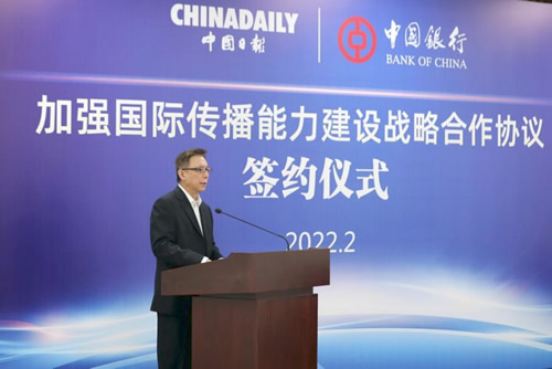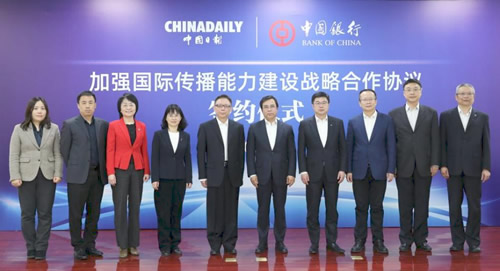 中国银行董事长刘连舸、副行长陈怀宇,中国日报社总编辑周树春、副总编辑刘伟玲、编委兼秘书长朱宝霞出席签约仪式。