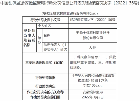 含山农商行违法发放借名贷款遭罚
