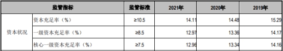 江阴银行的资产充足率指标均下滑。截至2021年末,江阴银行资本充足率为14.11%,上年同期为14.48%;一级资本充足率为12.97%,上年同期为13.36%;核心一级资本充足率为12.96%,上年同期为13.34%。