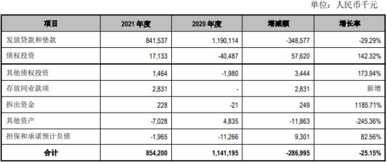 2021年,江阴银行共计提信用减值损失8.54亿元,较上年减少2.87亿元,降幅25.15%。主要系信贷资产质量提升。其中,发放贷款和垫款减值损失8.42亿元,同比减少29.29%。
