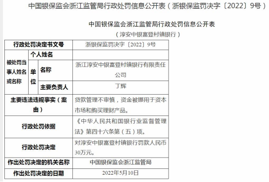莲都中银富登村镇银行2宗违法遭罚