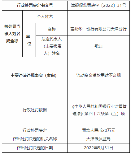 天津滨海扬子村镇银行被罚30万