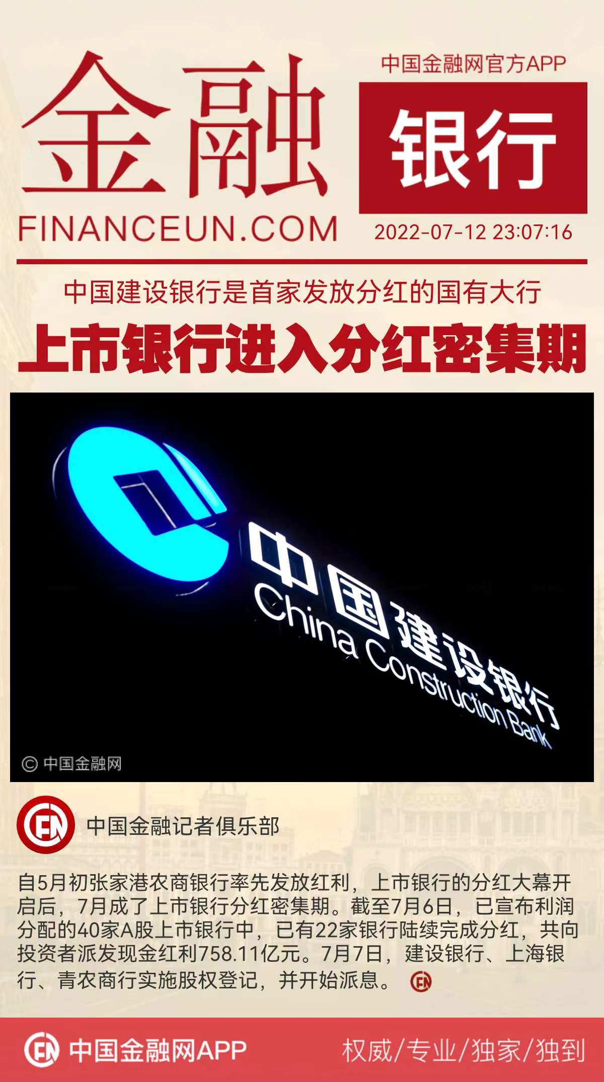 自5月初张家港农商银行率先发放红利,上市银行的分红大幕开启后,7月成了上市银行分红密集期。截至7月6日,已宣布利润分配的40家A股上市银行中,已有22家银行陆续完成分红,共向投资者派发现金红利758.11亿元。7月7日,建设银行、上海银行、青农商行实施股权登记,并开始派息。