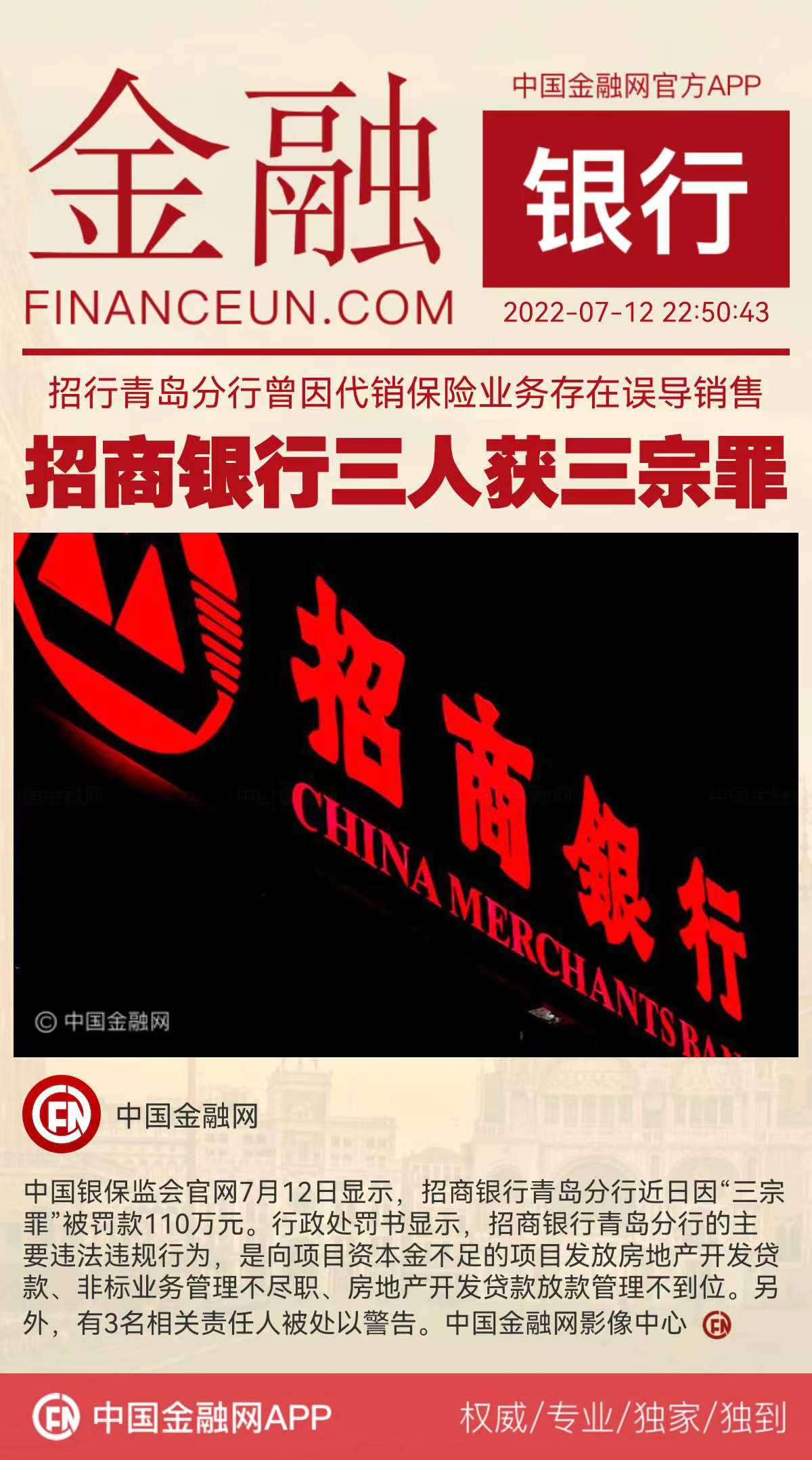 中国银保监会官网7月12日显示,招商银行青岛分行近日因“三宗罪”被罚款110万元。行政处罚书显示,招商银行青岛分行的主要违法违规行为,是向项目资本金不足的项目发放房地产开发贷款、非标业务管理不尽职、房地产开发贷款放款管理不到位。另外,有3名相关责任人被处以警告。