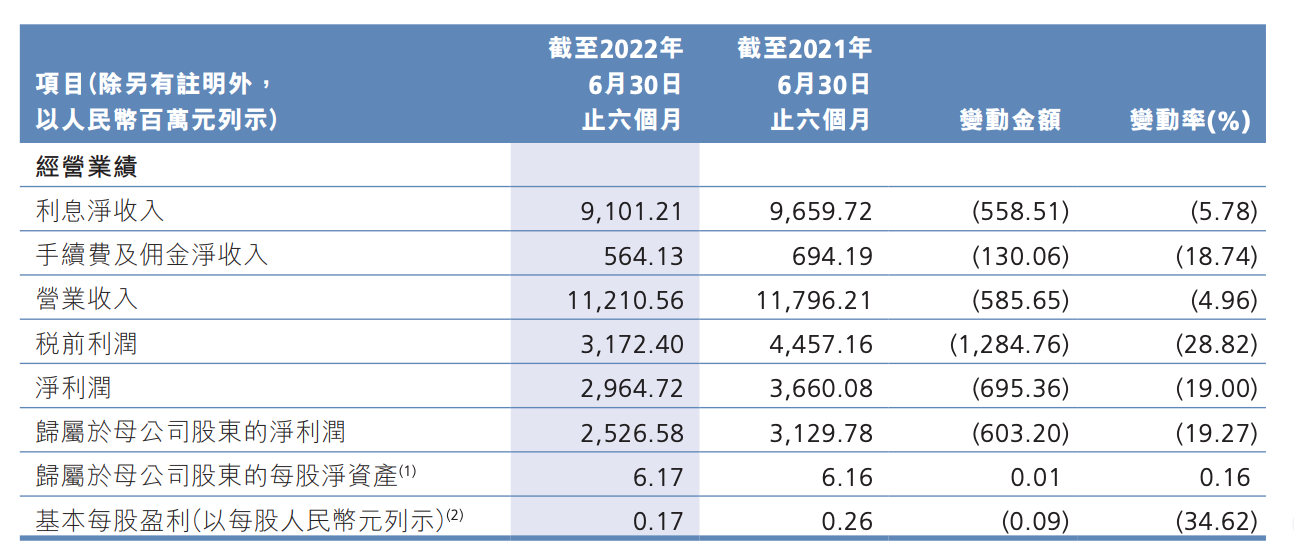 业绩“逆势”下降与该行上半年利息净收入减少不无关系。