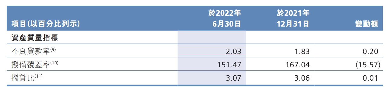 整体来看,截至今年二季度末,多数上市银行不良贷款率较上年末有所下降,然而广州农商银行的不良率较去年末上升了0.2个百分点;拨备覆盖率下降了15.57个百分点至151.47%,仅高于监管要求1.47个百分点,资产质量下行的同时,风险抵补能力亦有下降。