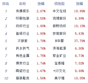 A股市场板块及个股涨跌幅排行