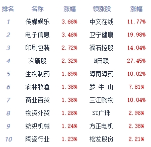 •   中国经济网北京3月31日讯 今日,A股三大指数高开高走。板块方面,传媒、教育、通信服务等板块领涨,酒店及餐饮、厨卫电器、医疗服务等板块走低。