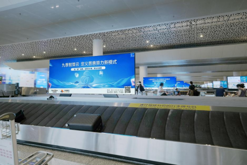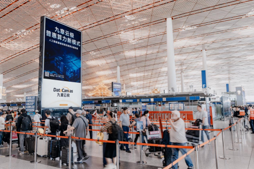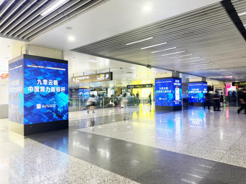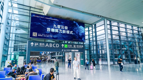 作为本次品牌升级的重要举措,九章云极在北京、上海、深圳等全国多个重点枢纽机场启动大规模广告投放,覆盖航站楼入口、行李提取区等高频流量区域,以极具冲击力的视觉呈现吸引行业关注,向来自五湖四海的旅客展示着品牌的新面貌。本次投放布局中,三大枢纽机场的选择颇具战略深意,精准呼应九章云极在普惠算力领域的发展定位:作为国家门户的北京首都机场,是展现国家战略与国际视野的窗口,将此处设为重要展示地,意在积极响应国家算力技术设施战略建设,同时向国内外传递中国普惠算力技术实力。