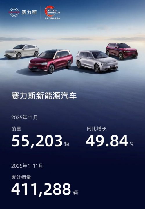 12月1日,赛力斯发布11月产销快报,数据显示,赛力斯新能源汽车11月销量高达55203辆,同比增长49.84%,再创历史新高,今年1-11月累计销量达411288辆。支撑赛力斯新能源汽车销量持续攀升的,离不开“以场景定义安全”的赛力斯智能安全体系,以领先技术诠释了“安全是最大的豪华”。