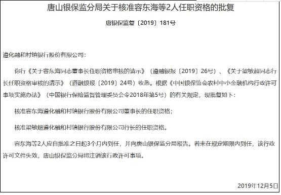徐保东当阳兴福村镇银行董事长的任职资格获批