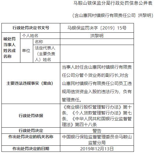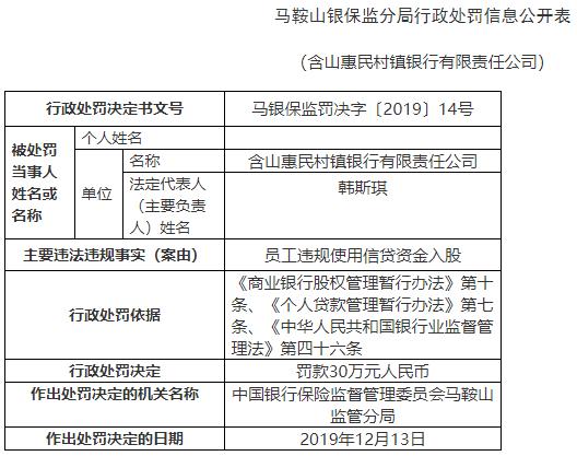 庐江惠民村镇银行内部混乱被罚