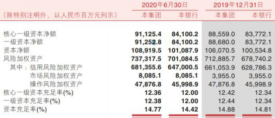 渝农商行的资本充足率指标均下滑。截至2020年6月30日,渝农商行的核心一级资本充足率为12.36%,比上年末下降0.06个百分点;一级资本充足率为12.38%,比上年末下降0.06个百分点;资本充足率为14.77%,比上年末下降0.11个百分点。