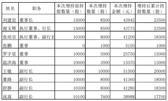 渝农商行11名董事高管已合计35万元增持 稳定股价