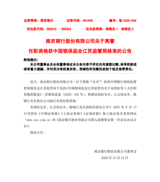 南京银行:行长增持约106万元公司股份