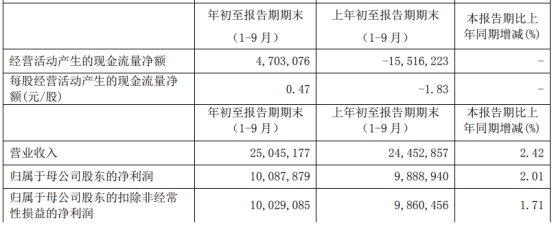 广州农商行前三季度净利润同比增长3.65%至33.06亿元