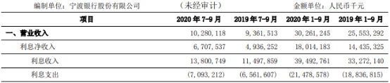 宁波银行:前三季净利润同比增26.94%
