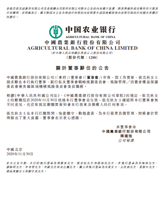 农行:2020年净利润2164.00亿元